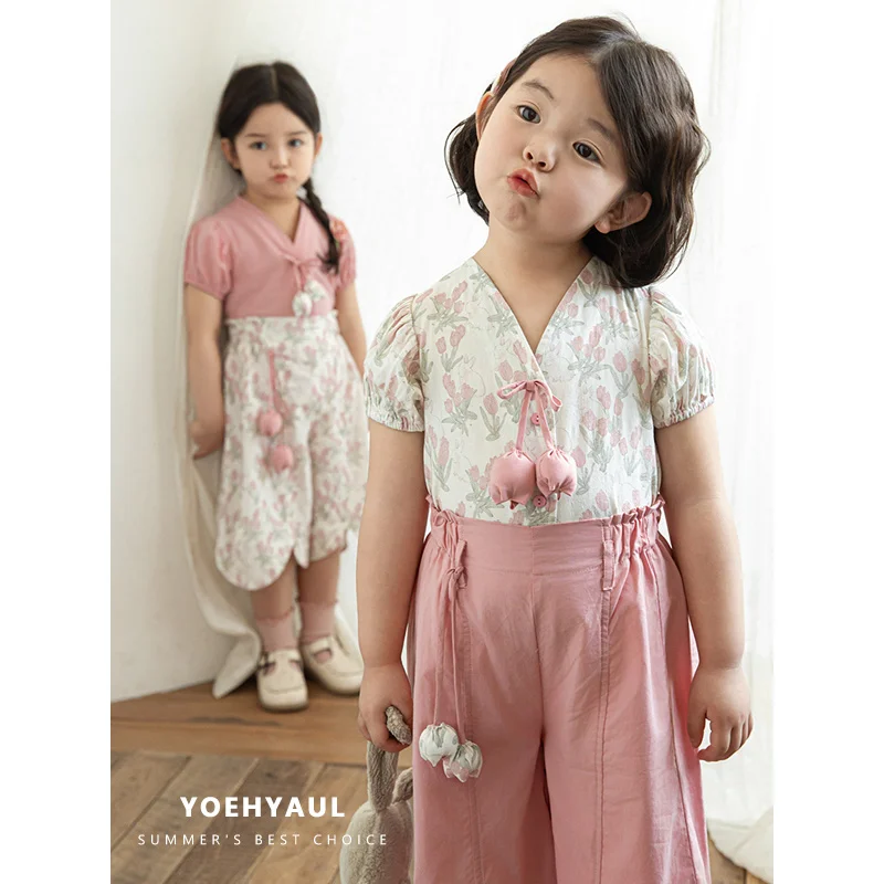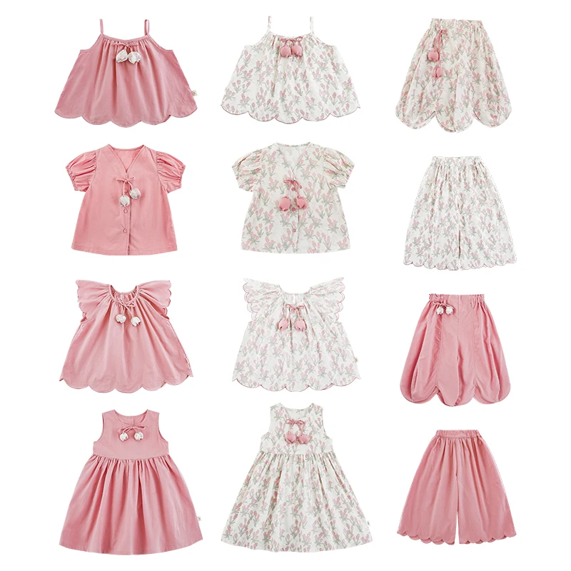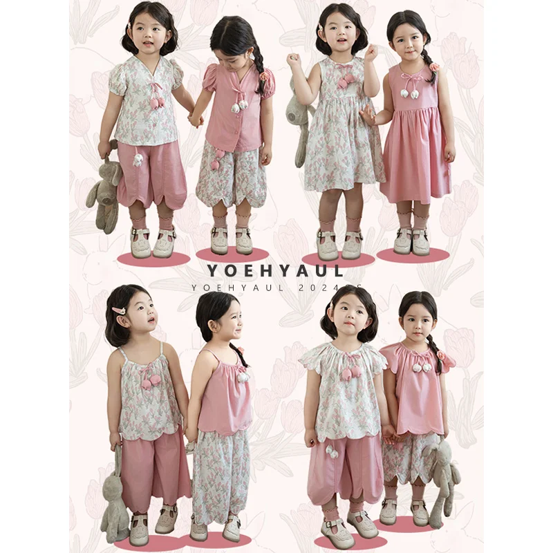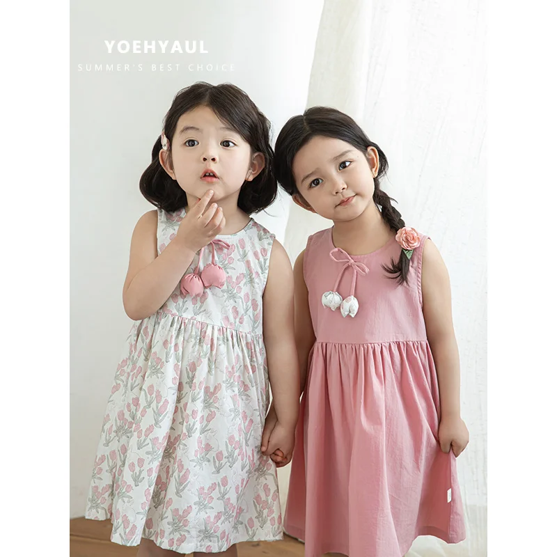 YOEHYAUL LX0182 Girls Tulip Series 2026 Summer Sweet and Cute Sleeveless Dress Puff Sleeve Baby Sweater Multi-piece Set